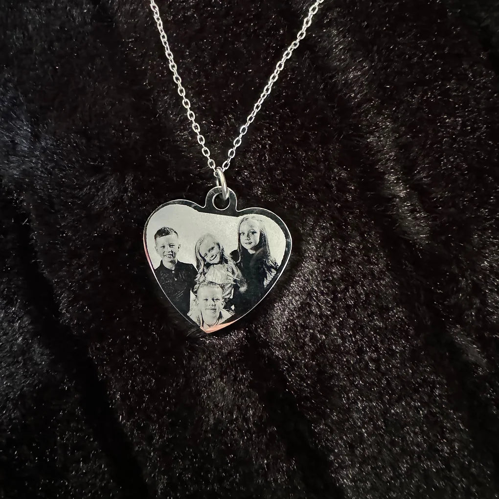 Engraved photo necklace